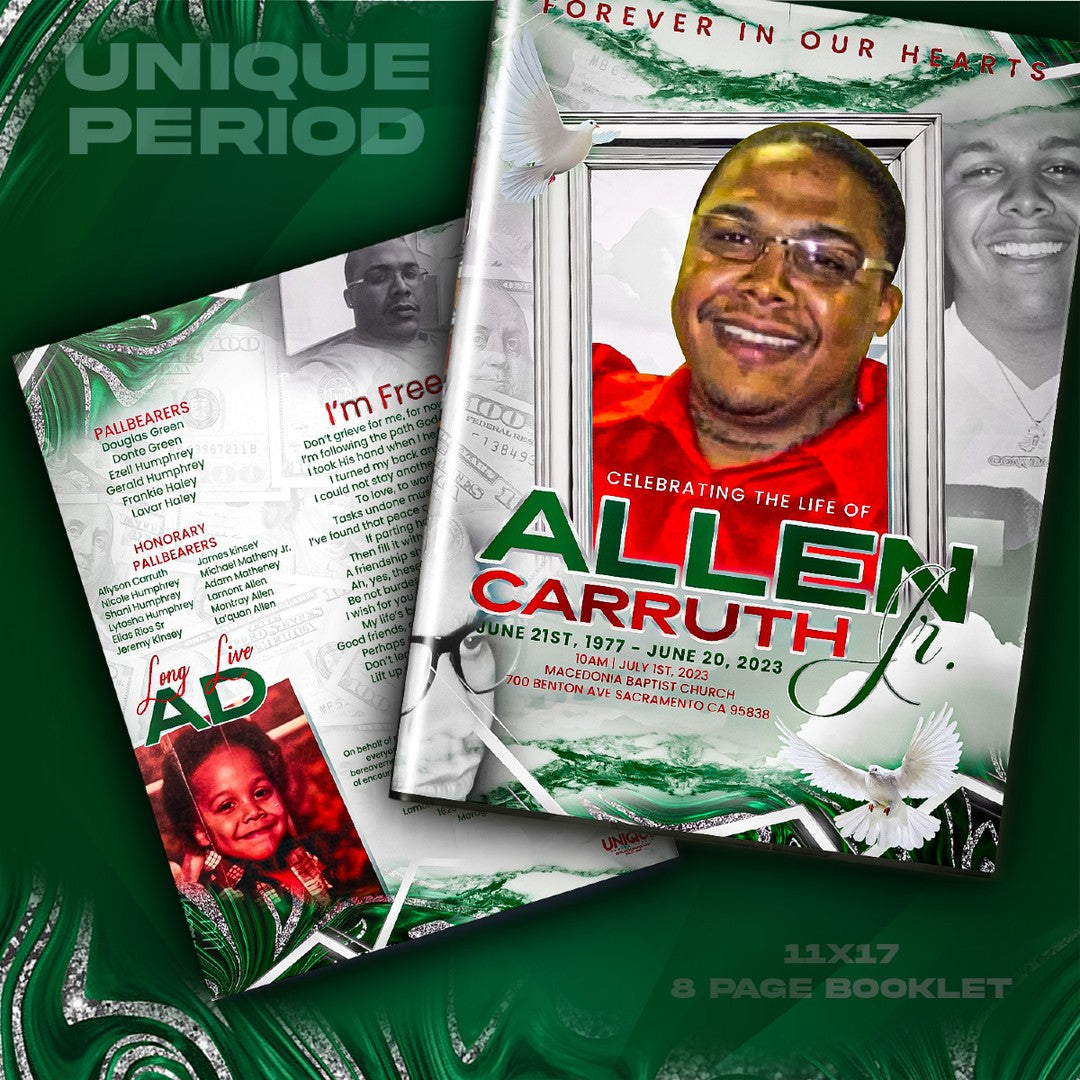 Obituary Design: can come in standard 4 page, 8 Page, 12 page, Tri-Fold