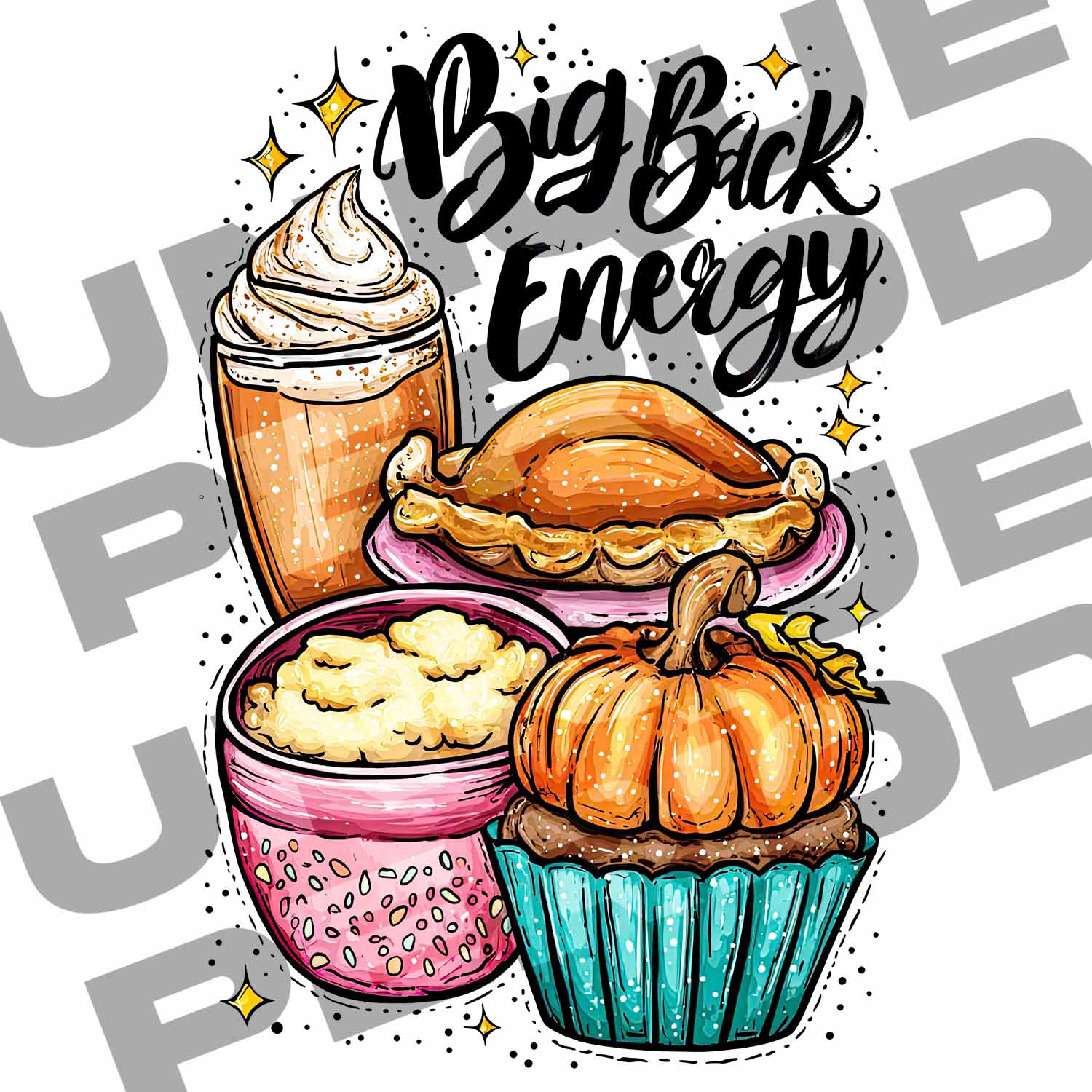 Celebrate Thanksgiving in style with Big Back Energy Stack. This design blends festive energy with cozy hungry fall details, making it perfect for apparel, and seasonal décor. Provided as a crisp PNG with transparent background, it’s easy to use in your creative workflow.