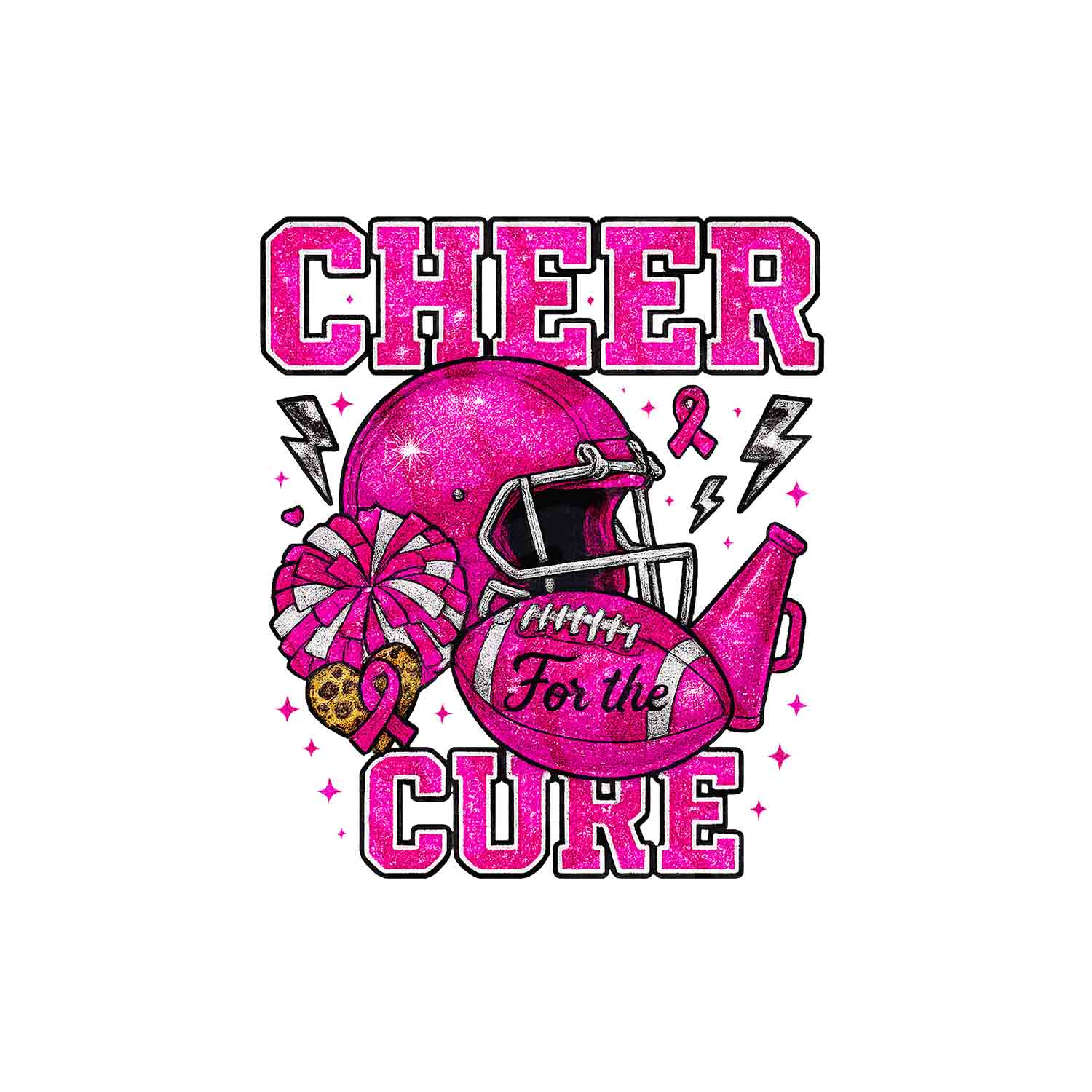 This glitter varsity-style Breast Cancer Awareness design features bold “CHEER” lettering, pom-poms, and a pink ribbon centerpiece. Great for cheer squads, schools, or awareness events. Includes a transparent 300 DPI PNG file, ready for sublimation crafts, and DTF print ready.