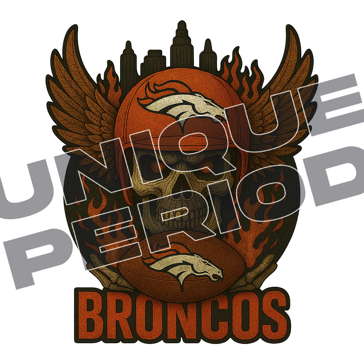 Charge into the field with the Denver Broncos Skull Patchish design. A fierce skull-style graphic that brings Broncos apparel to life.