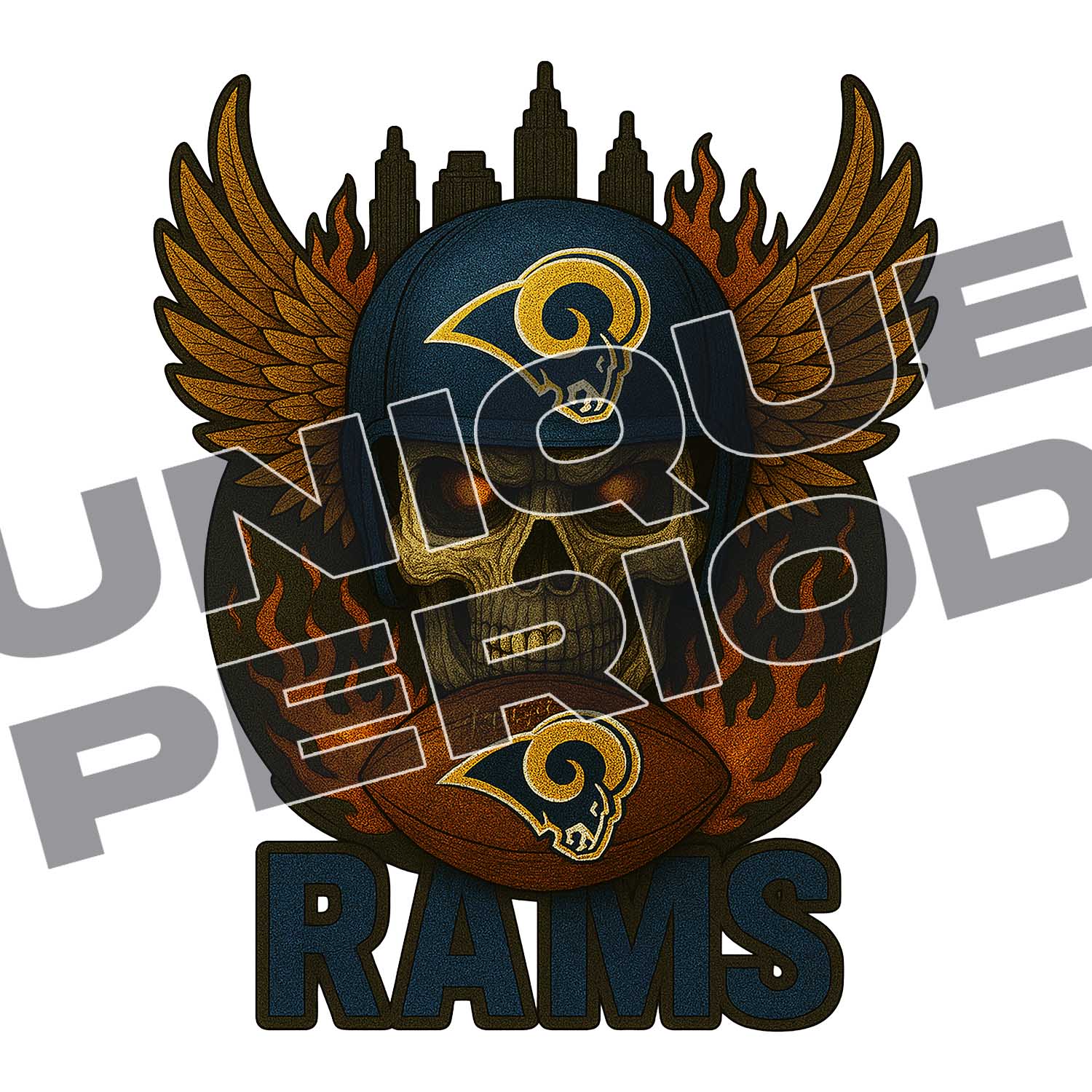 Stand proud with the Los Angeles Rams Skull Patchish design. A patch-style skull graphic that powers up Rams fan gear.