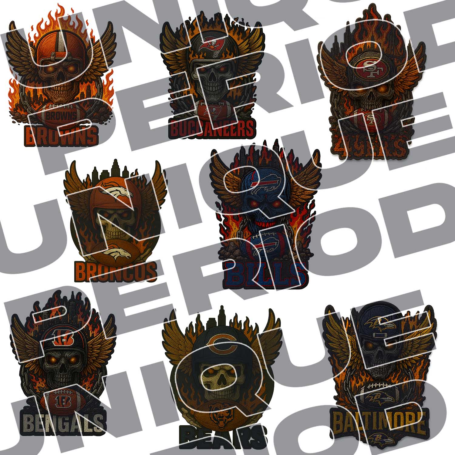 Take your sports-inspired creations to the next level with the NFL Skull Patchish Mega Bundle. This complete collection includes all 32 Skull Patchish PNG designs, each featuring bold skull-inspired, patch-style artwork that gives every team an edgy look.