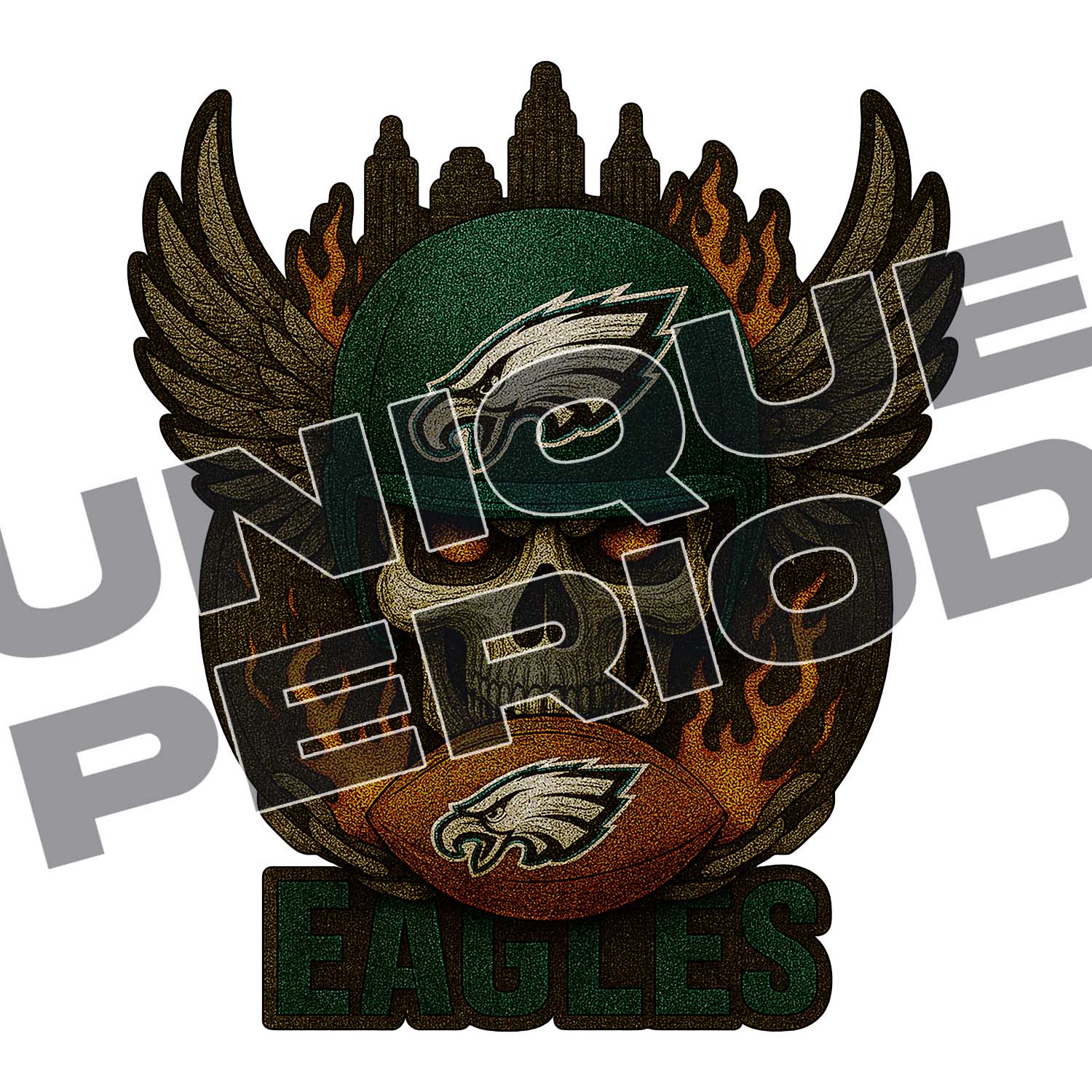 Fly Eagles Fly with grit in the Philadelphia Eagles Skull Patchish design. Skull-style patch detail for bold Philly gear.